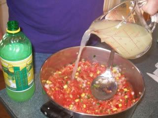 Two cups of lemon juice......for canning this important to help preserve the salsa